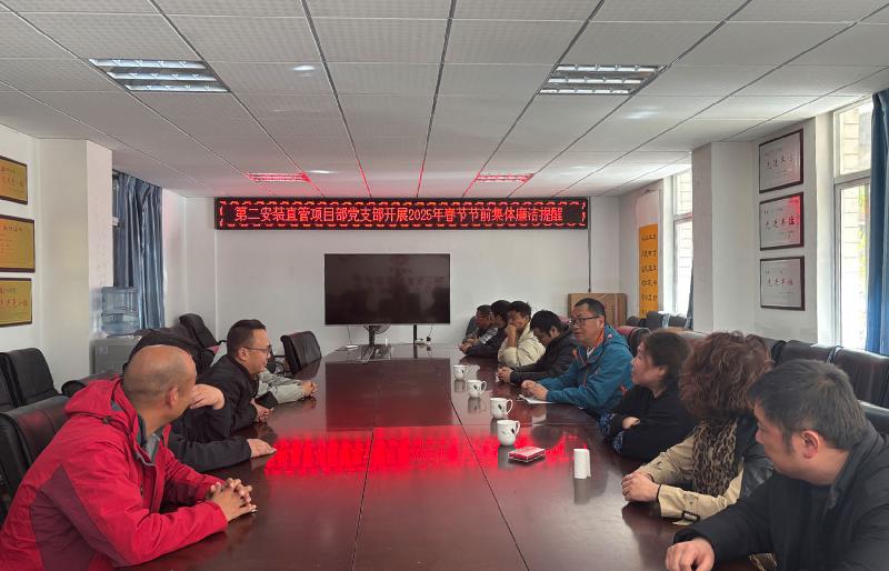 1月24日,第二安裝直管項(xiàng)目部開展春節(jié)節(jié)前集體廉潔提醒談話活動(dòng),直管部領(lǐng)導(dǎo)班子成員、在昆黨員以及二線管理人員參加會(huì)議。