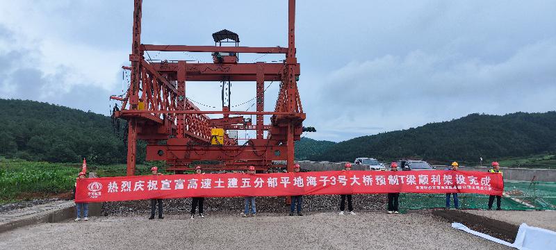 6月27日,由公司市政路橋一部負(fù)責(zé)施工的宣富高速公路項(xiàng)目土建五分部平地海子3號(hào)大橋T梁順利架設(shè)完成。
