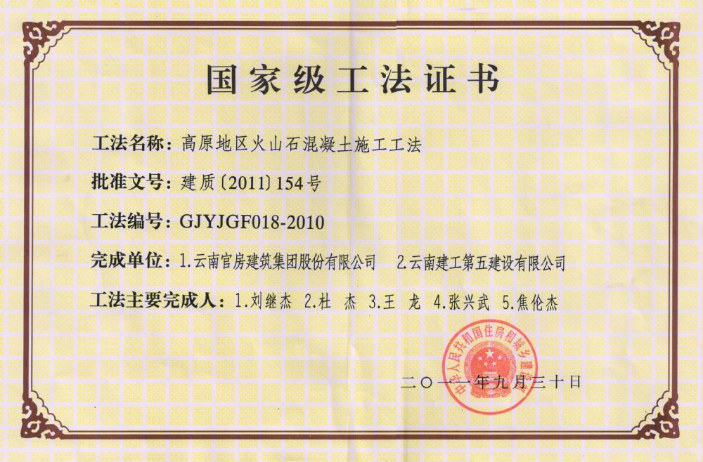 (國家工法)高原地區(qū)火山石混凝土施工工法